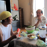 その後、宮司さんの奥様が凍らせておいてくれたタオルで出迎えてくれて、昼食を用意してくださっていて、なおかつ手作りのシフォンケーキ