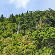 また、「向こうに突き出ている大峡の東方には、森吉と森山の岳と寒風山とが一つに峯が重なって、八竜湖の半ばをふさいでいる」。
