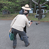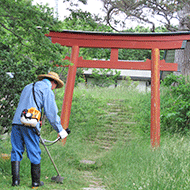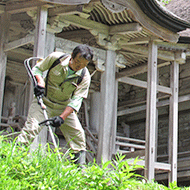 今回は翌週にひかえた円空仏一般公開にむけての草刈だったのですが、たまたま円空仏が祀られている「客人権現堂」の前で草を刈っていたゴーストバスターズが参拝にきていた方に声をかけたところ